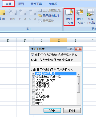 在“审阅”→“保护工作表”,勾选对应的操作,根据需要输入密码(也可不输入密码)。