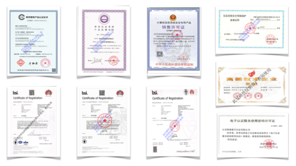 一般地,除了需要取得等保三级、ISO27001认证等,保证平台信息安全和数据加密传输外,还需要获得《商用密码产品认证证书》和“CA机构授权书”两项行业性资质,简称“商密资质”和“公信资质”。