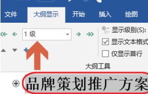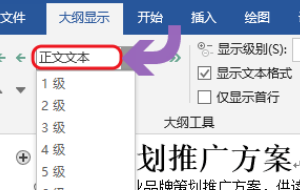 4、返回到文档之后,点击工具栏的“视图”-“大纲”,将文档设置为大纲浏览模式,然后大纲显示下方会看到一个等级显示的选框;