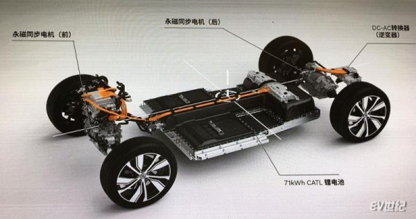 XC40RECHAGE的电池包也放置在底盘上,但并非一个整体结构完整平铺在底盘上。由于CMA架构的局限性,27个电池模组分成三部分放置(每个模组12个电芯)。虽然电池包形状不规则,但车辆前后配重仍然实现了完整的50:50的比例,对于车辆的动态操稳性能有很大提升。