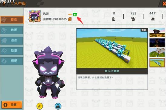 个人中心是每个迷你玩家的资料库,在这里,可以查看自己的迷你号、皮肤(或角色,但前提是没有开启角色锁)、迷你号、方块值、粉丝、人气值等。