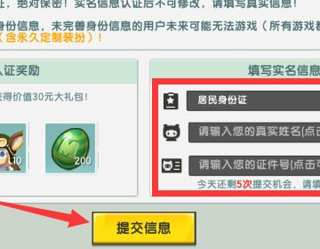 3.填写自己的个人信息并且绑定最后点击提交信息即可对自己的未成年时间进行重新修改充值,注意提交后不可再次修改。