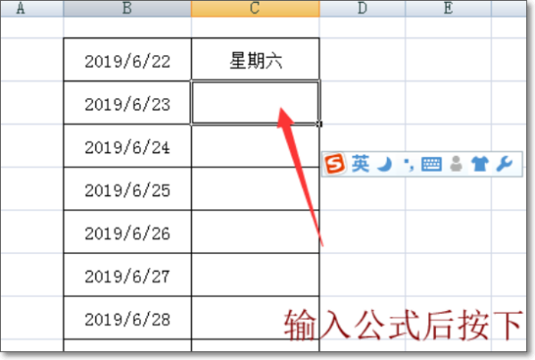 接着,我们在C133单元格输入:=TEXT(WEEKDAY(B133,1),"aaaa")
