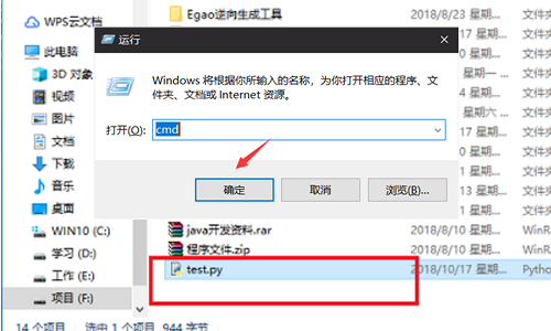 2、打开cmd,cd到该目录下,输入文件名,比如test.py,回车后就可以运行文件了。
