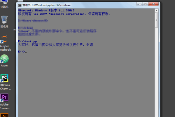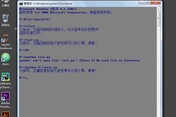 3、按下回车键,可以看到窗口中py文件开始运行了,注意在命令行运行py文件,要将python安装路径添加到环境变量path中,否则会报错,找不到命令。至此python运行文件的操作就完成了: