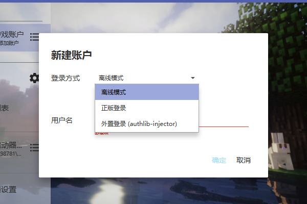 3、在打开的界面中,选择登录方式为离线模式,选择好后,填写下方的用户名选项,点击确定即可。