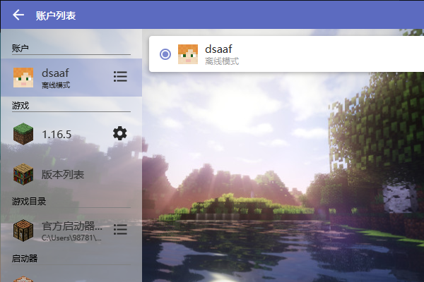 4、可以看到登录模式为离线模式的账户已经添加完毕。