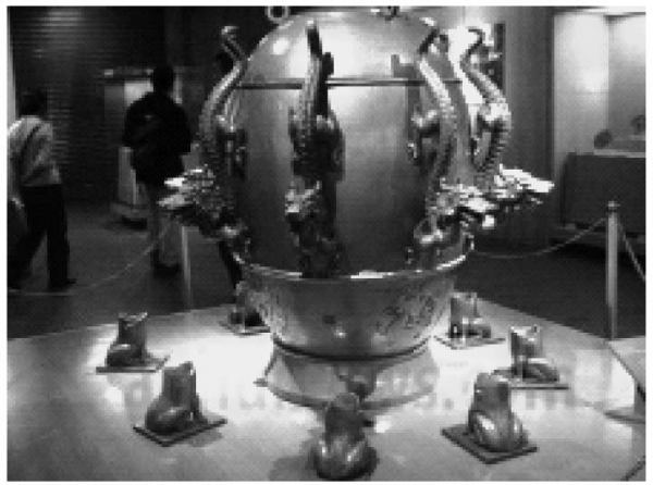 在古代,大约公元前14世纪到公元前11世纪,世界上包括中国、埃及和巴比伦等文明古国由于生产发展对计量时间的需要,都出现了能够自动计时的漏壶。汉朝科学家张衡发明了浑天仪和地动仪,其模型外形图如图4-2所示,把自动控制思想应用到了天文观测仪器和地震观测仪器。三国时期出现了指南车,它是确定方位仪器中利用自动控制思想的成功示例。中国北宋时代(公元1086—1089年)苏颂和韩公廉制造的水运仪像台如图4-3所示,它是将用于天文观测的浑天仪和用于天文演示的浑象仪及自动计时装置结为一体的仪器。整个系统就是一个按负反馈原理构成的闭环非线性自动控制系统。