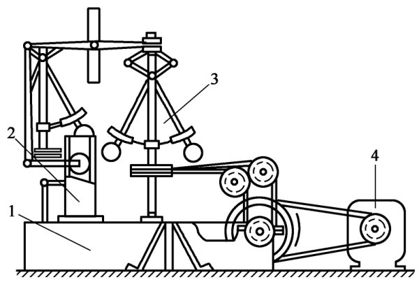 1—蒸汽机;2—蒸汽阀;3—调速器;4—负荷
