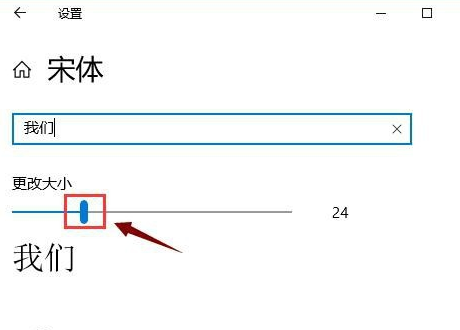 6、然后还可以左右拨动“更改大小”按钮,就可以改变字体的大小。