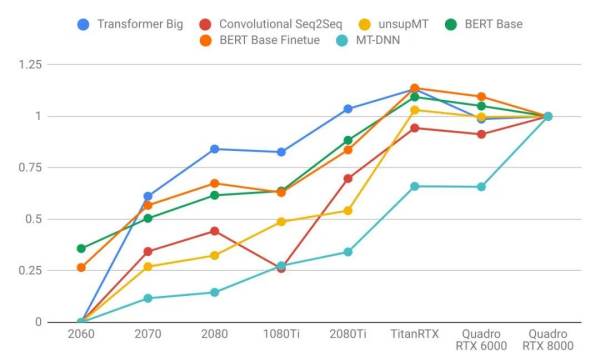 - 使用Quadro RTX 8000结果进行标准化后的表现