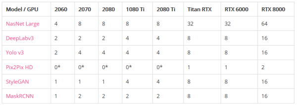 截至2020年2月,以下GPU可以训练所有当今语言和图像模型: