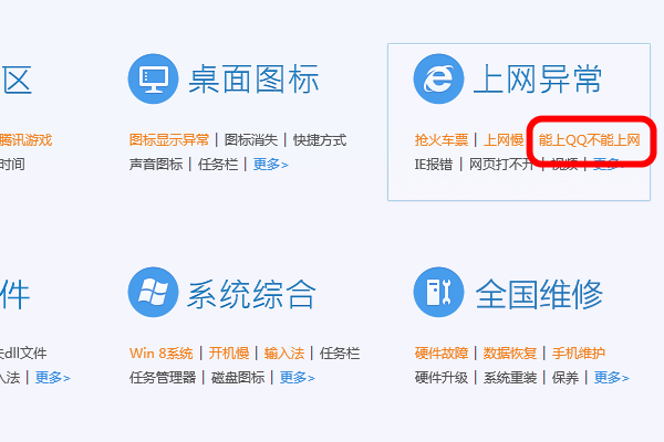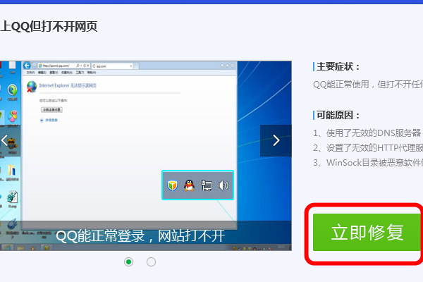 6、点击“能上QQ但不能上网”的按钮。