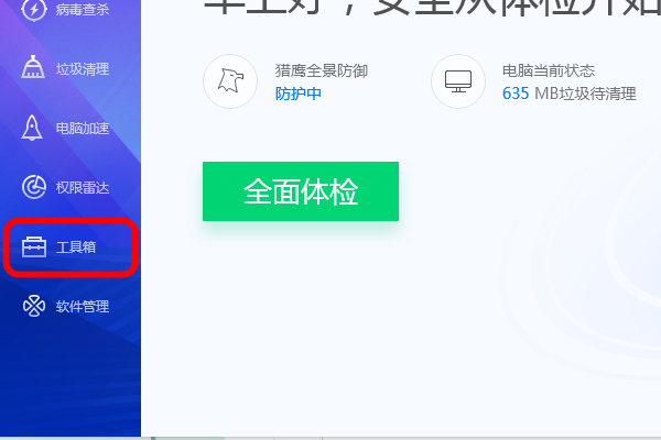 3、点击界面左侧下方的“工具箱”。