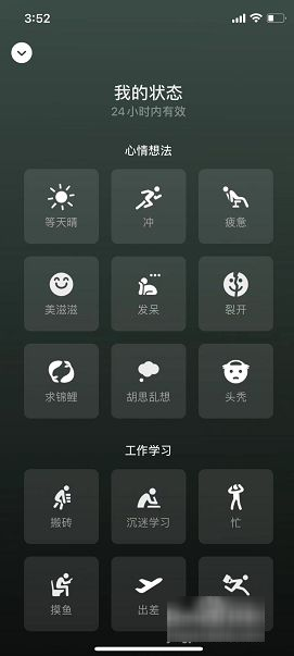 我们可以把微信“状态”直接理解为用户的“心情或精神状态”,微信官方为用户提供了与时事(奥运)、心情、想法、工作、学习、活动、休息,以及其他一些表情(状态图标)等选项,用户通过查看这些表情,选择一种适合自己心情、当下状态的图标。而朋友设置的状态,可以代表对方当时的心情。