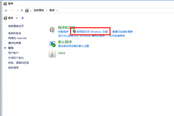 4、在打开的程序画面中,找到程序和功能 接着找到启用或关闭windows功能 一项。
