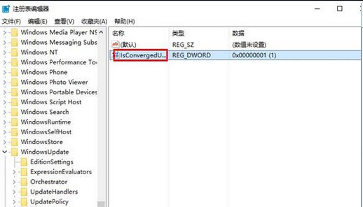 2丶打开HKEY_LOCAL_MACHINE\SOFTWARE\Microsoft\WindowsUpdate目录,找到并打开UX下的“IsConvergedUpdateStackEnabled”项。