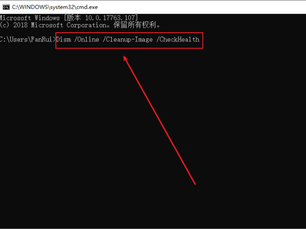 4丶接着输入:Dism /Online /Cleanup-Image /CheckHealth,等待修复完成即可。