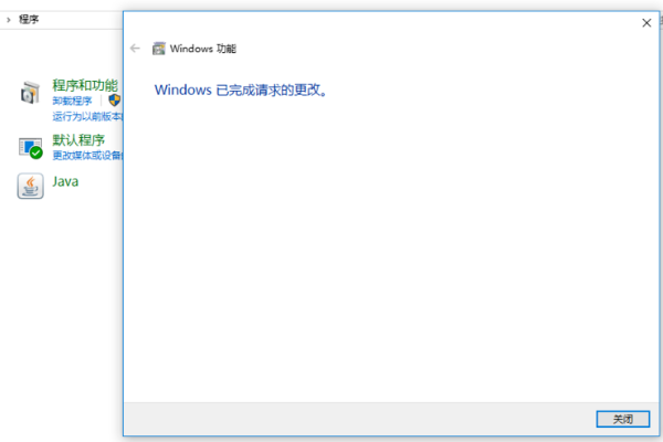 7、安装完成后,系统会给出提示 windows已完成请求的更改,选择关闭。这样.net framework 3.5就安装完成了。