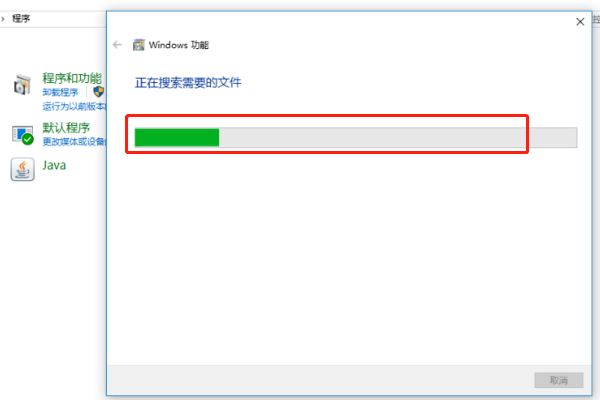 6、选中.net framework 3.5单击右下角的确定。win10系统会自动的搜索需要的文件,并自动进行安装,这期间不需要我们做其他的操作,也不不会弹出其他的窗口,就如下图的画面,一直等到进度条走完就好了。