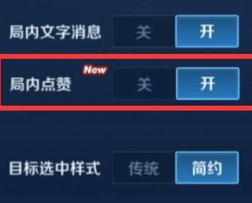 4、最后选择开即可在游戏中点赞了,如下图所示就完成了。