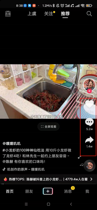 第2步:这是刚进入抖音的界面,旁边有点赞与评论区。