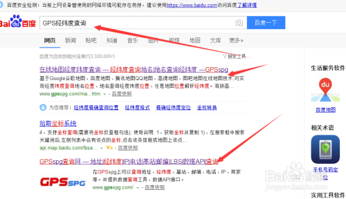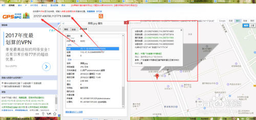 4.现在打开浏览器-----百度搜索"GPS经纬度查询",找到相关网站。输入原图属性中的经纬度(如图:)