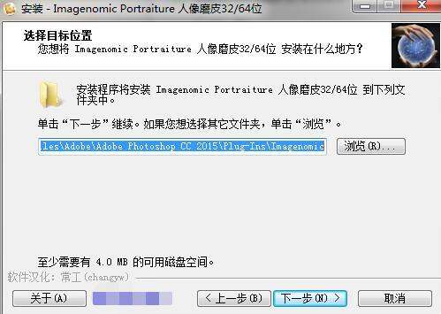 如果是绿色版的PS,找不到PS滤镜目录,点击“浏览”手工指定安装到PS滤镜目录。