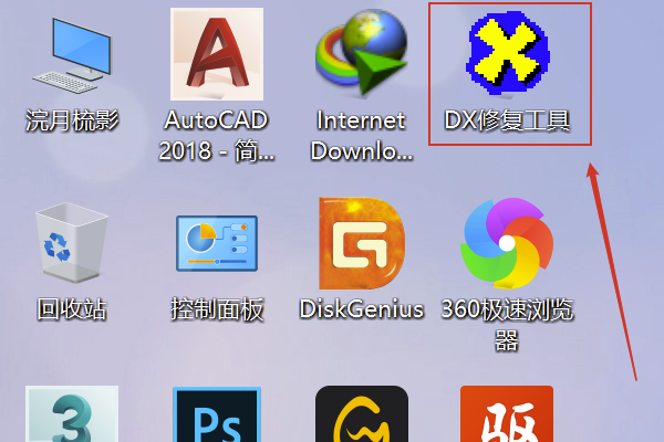 1、在电脑桌面点击打开DX修复工具程序。