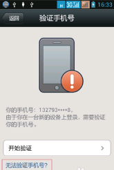 当你输入微信账号点击登陆后出现这个界面时,点击下面的“无法验证手机号”。