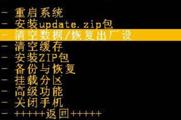 3.依次对“清空缓存数据”、“清空用户数据”、“清空所有数据”进行操作一次,确保清除干净。(注意:音量上下键表示选择键,电源键表示确认。)