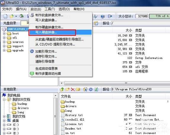 3、插入U盘(然后此U盘是要格式化的哦,注意把里面的文件先拷贝出去)选择“启动”-“写入硬盘映像”。