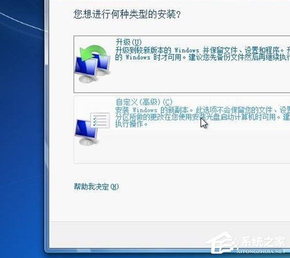 8、然后接下来,就是安装系统了,和光盘以及硬盘安装是一样的。不过必须注意的是,一定要选择“自定义安装”哦,也就是第二个。