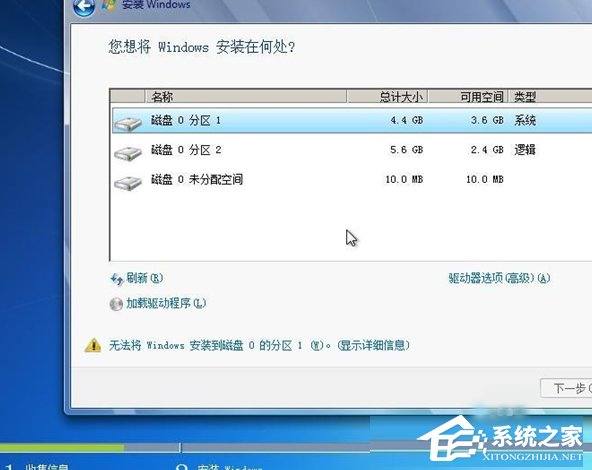 9、格式化之前的系统盘,选择右下角的“驱动器选项(高级)”,然后选中之前系统的分区,点格
