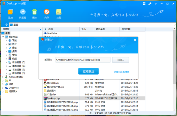 通常压缩文件不兼容的原因出在解压工具上面,需要下载正版的解压工具。(这里用的快压压缩软件当做例子)