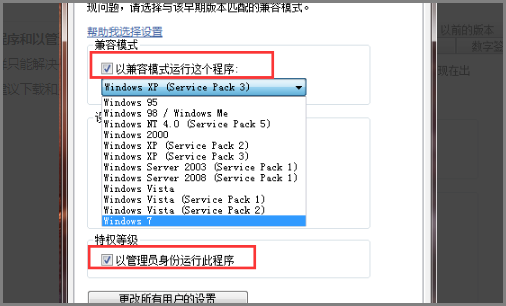 6、以兼容模式运行这个程序和以管理员身份运行此程序都勾上,这样就能解决不兼容问题了。