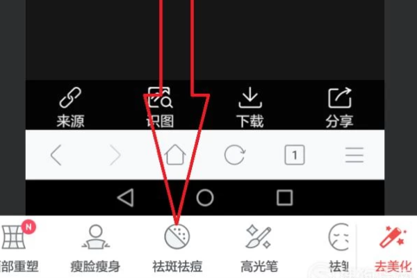 5、在下方的菜单栏点击“祛斑祛痘”。