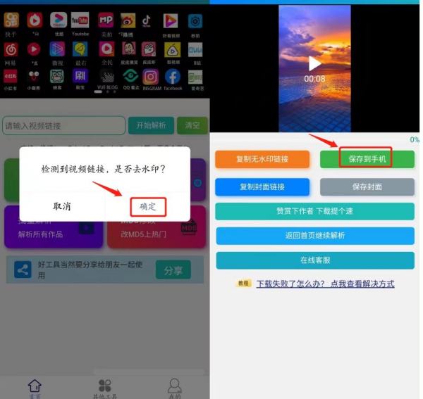 第三步:进入小程序,粘贴链接,解析成功,即可保存