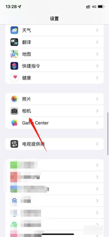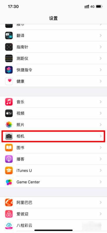 1、苹果手机微信视频镜像是反的话,关闭微信返回手机系统设置,打开相机设置。