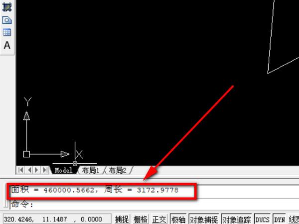 3、点击“回车键”,这时候就直接弹出面积信息,这里的面积一般是以mm为单位的,所以要转化成自己习惯的平方米,小数点向左移动6位即可看出面积。