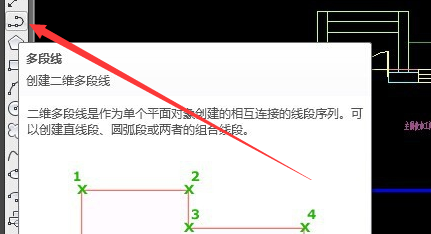 2.在CAD左侧菜单栏中鼠标左键点击多段线,然后在图纸中选中需要计算的多段线。