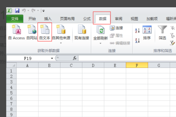 2,接着,打开Excel表格程序,进入程序主界面。点击“数据”“自文本”选项,点击打开。
