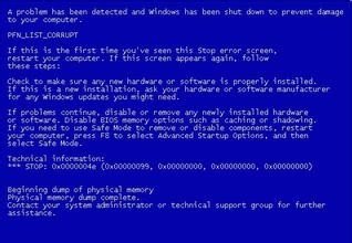 内存条接触不良或内存损坏导致电脑蓝屏在实际的工作中笔者遇见最多的电脑蓝屏现象就是内存条接触不良(主要是由于电脑内部灰尘太多导致,老电脑常发生)以及硬盘故障导致的电脑蓝屏居多,当然遇到电脑内存条出现故障也会出现电脑蓝屏现象。解决办法:由于多数是由内存引起的蓝屏故障都是由于内部灰尘过多或者接触不良导致,所以解决办法也非常的简单,只需要打开电脑机箱,将内存条拔出,清理下插槽以及搽干净内存条金手指后再装回去,一般问题都可以解决。如果问题没有解决,确定是内存故障,更换内存条即可解决问题。