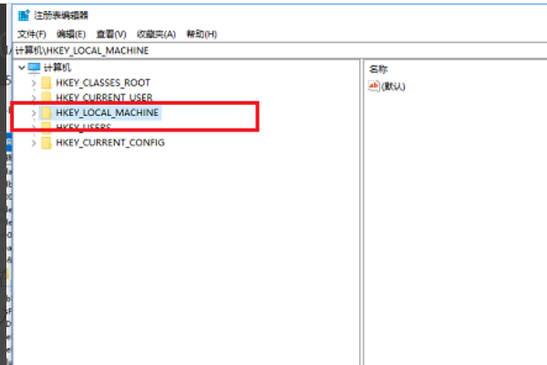 2、打开注册表之后,点击HKEY_LOCAL_MACHINE。