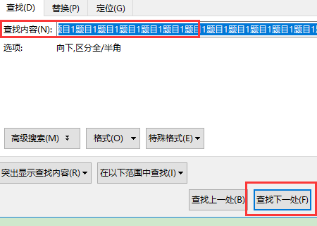 4、其次在该界面中,显示查找内容,点击“查找下一处”按钮。