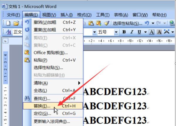 2、点击编辑菜单,选择“替换”(快捷键CTRL+H);