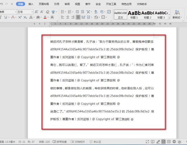6、回到文档中,可以看到重复部分都已经被删除了。