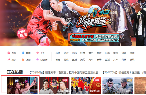 3、在打开的优酷网站中,点击一个视频,进行播放。