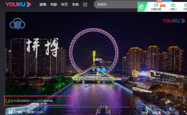 四、这时左下角会显示“正在切换到高清1080P 画质,请稍候”, 这时只需等待数秒即可切换完成。