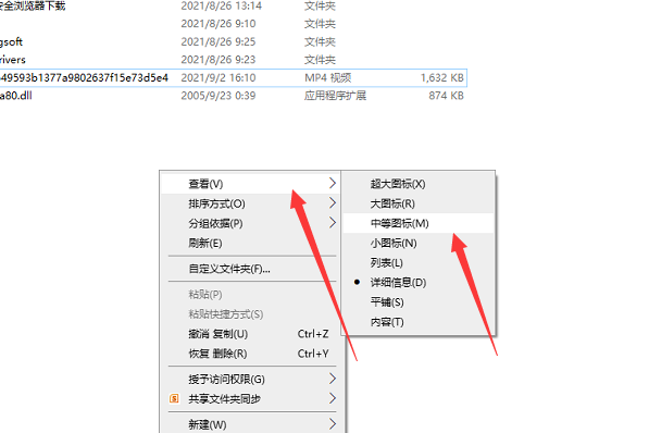 2、在空白处点击右键,选择查看方式下面的中图标。